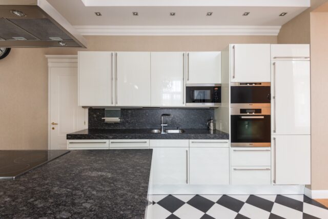 Choosing a suitable color scheme has a significant effect on the overall look and feel of the kitchen. Consider opting for a granite and white combination for a classic, timeless look, or go for a bold contrast with black and white or navy and white. You could also opt for a white look for a clean, modern aesthetic.