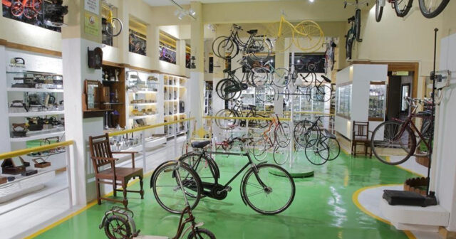 The second level exhibits various home items as well as amazing scale models and toys for children. The museum’s showpiece is a recreation of a 1940s cycle store, replete with old cycle advertising, tires, and nuts and bolts!