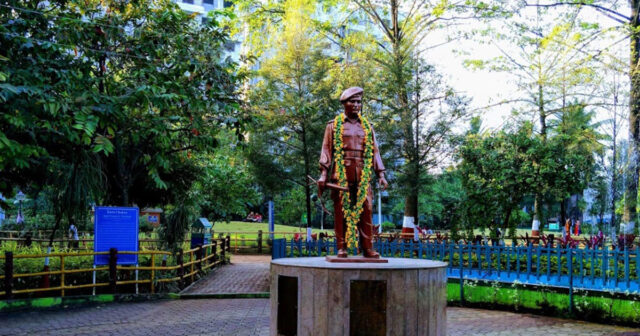 A life-size statue of the hero testifies to his majesty, greeting every visitor and opening it to a lush green garden. There are various attractions in the area, such as fountains and a yoga center.